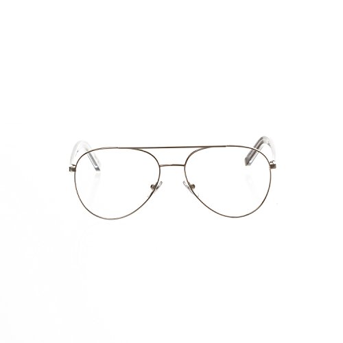 Product Description These optical glasses are done in silver color metal. The arms are clear over the silver metal with silver tips at the ends. The lenses are rimmed in the silver colored metal. These glasses are for you to get prescription lenses made. Prescription lenses not included. Or you can wear them as is, to look cool. 0