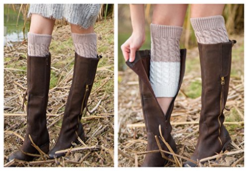 -. Feature : 1.Material:Acrylic fibers 85%,Spandex 15%.Crochet knitted,new brand and high quality. / 2.One size fit most.Size:approx 28cm*10cm/11.02"*3.94",stretchy soft and fashionable. / 3.Features:Two-tone crochet boot cuff,one pair can wear in two ways / 4.Well perfect and fashionable to dress up with your skinny jeans,legging,skirts or coat to protect your legs from the chilly weather;and also a very good leg warmers to wear at home. / 5.Packing Contents:3 pairs mix color cuffs(white&black,white&gray,white&beige),perfect gifts to yourself or friends