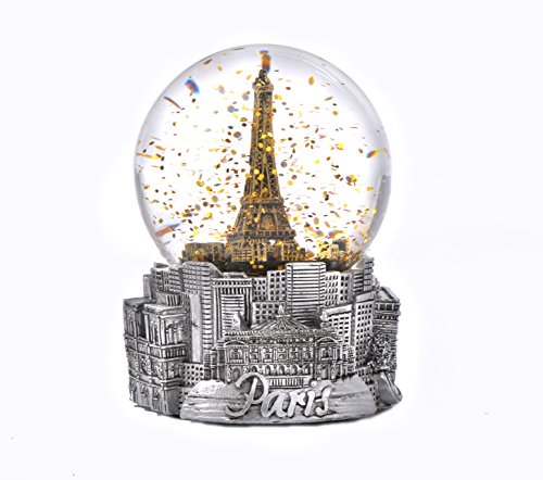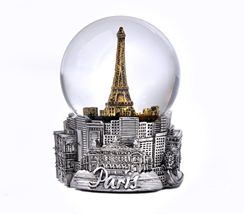 Paris France Eiffel Tower Snow Globe in Silver and Gold Exclusive 65mm