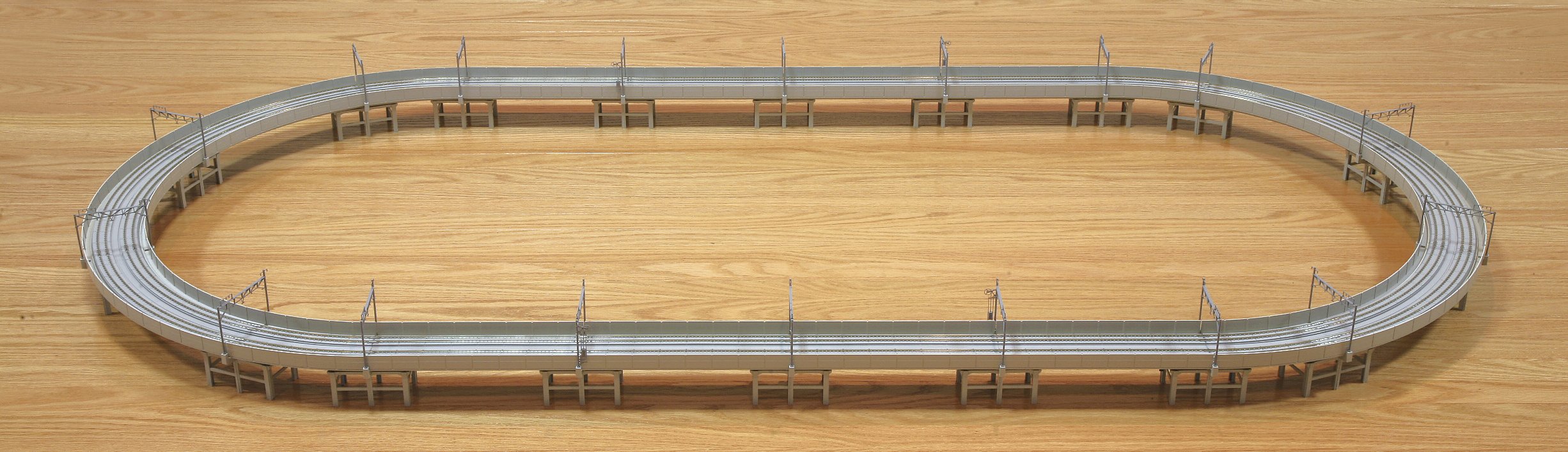 KATO's V line set "V 11 ~ V 14" · As with the real thing, we use a combination of the approach line to make gradual difference in elevation at the entrance and exit of the curve and the curved line of the cant part with a difference in height.