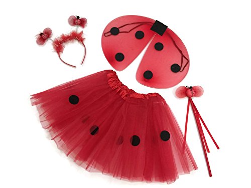 -. Brand : Rush Dance -. Department : girls -. Feature : Fits bigger new born to 3 Years old for infant and fits 2-6 years old for kids size / Comes with a Wand, Tutu, Headband & Wings - Red & Black Ladybug / Perfect as party favors! / Perfect for your birthday, dress up parties, pictures, playtime or everyday wear! / Exclusively by Rush Dance TM -. PackageQuantity : 4 -. ProductGroup : Apparel -. ProductTypeName : CHILDRENS_COSTUME -. Title : Rush Dance Red & Black Ladybug Princess Fairy- Wings, Wand, Headband & Tutu