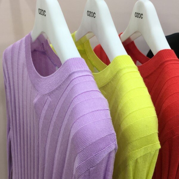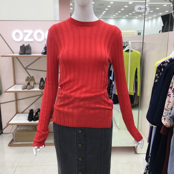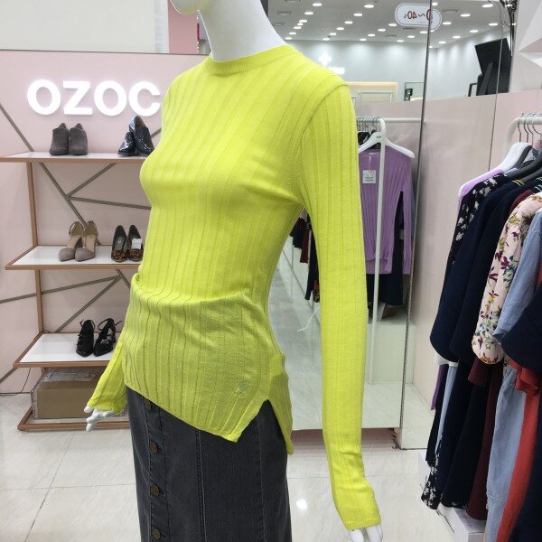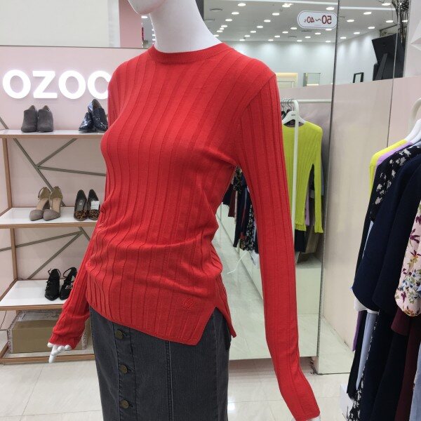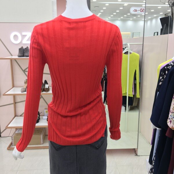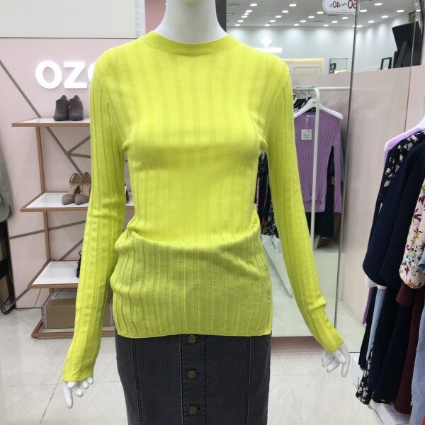화사한 컬러가 돋보이는 긴팔 니트 소개해드려요.약간의 시스루 느낌이며 여리여리한 핏을 완성해줍니다.