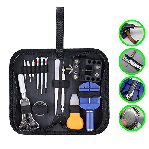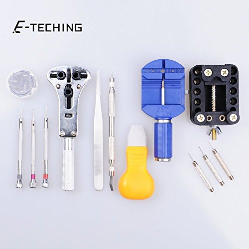 Studio : E-TECHING Publisher : E-TECHING Binding : Misc. Product Description This watch repair kit is a high quality product and the best starter to repair your watch. Many of the tools are included to do the most common tasks like watchband adjustment, opening watch backs, changing watch batteries, changing watch gaskets, adjusting watch bands, and more. You will be able to open a watch and remove most any watch band with relative ease. If you like to have a portable tool kit, it is the perfect one small, clean, and functional, this kit will be ideal to open and work on your watch anywhere you want. Brand New and High Quality product. Small, convenient, easy to use watch repair kit. Portable handy box set design, easy to carry anywhere you want . Can be set in different positions for different size cases. This tool set includes the following common watch repair tools: 3 x Pcs Precision Screwdrivers(1.0mm, 1.2mm, 1.6mm) 3 x Pcs pin punch (0.8mm, 0.9mm, 1.0mm) 1 x a box of Watch Case Back Opener Wrench accessories 1 x Stainless Steel Tweezers 1 x Watch Case Back Opener Wrench 1 x Watch Case Back Opening Tool Knif 1 x Spring Bar Tool 1 x Watch Band Strap Link Pin Remover 1 x Watch Case Holder 0