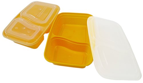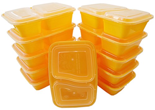 Table To Go 50-Pack Bento Lunch Boxes with Lids (2 Compartment/ 32 oz) | Microwaveable, Dishwasher & Freezer Safe Meal Prep Containers | Reusable Dish Set for Prepping, Portion Control & More (Yellow)