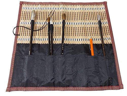 MasterChinese Bamboo Calligraphy Brush Holder Roll-Up Protection 15x14 inches - Large