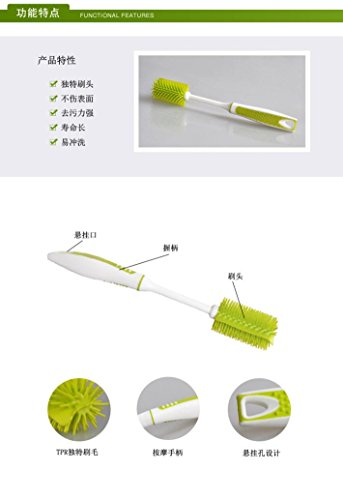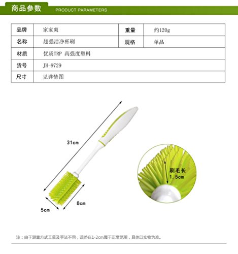 -. Feature : √ High strength plastic Cup Bottle Washing Brush, durability, easy to rinse / √ Soft, massage handle, non-slip grip / √ Portable & hanging type dimensions / √ Fits most bottle sizes; flexible neck for easily reaches inside bottles clean / √ Dishwasher safe, size: 31*5*8 cm