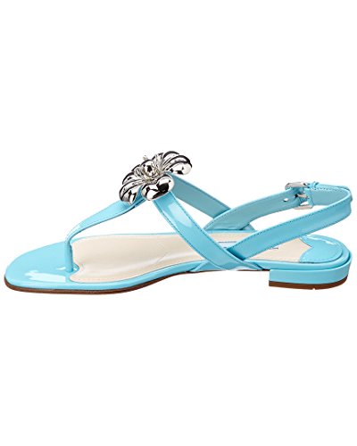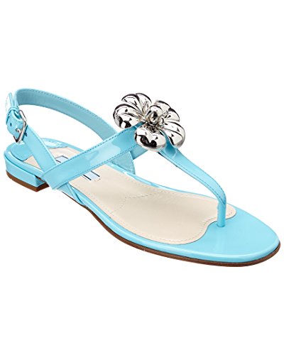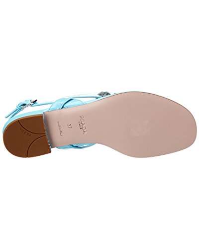 Studio : Prada Publisher : Prada Binding : Apparel Product Description Please note: Size selections are European. For US conversions, please reference size chart.. . Made in Italy. . Color/material: blue patent leather. . Design details: silver-tone hardware. . Slightly elasticized ankle strap with adjustable buckle closure. . Lightly padded leather insole. . Smooth leather sole. . .5in heel. . Please note: All measurements are approximate and were taken from a size 37; slight variations may occur. 0