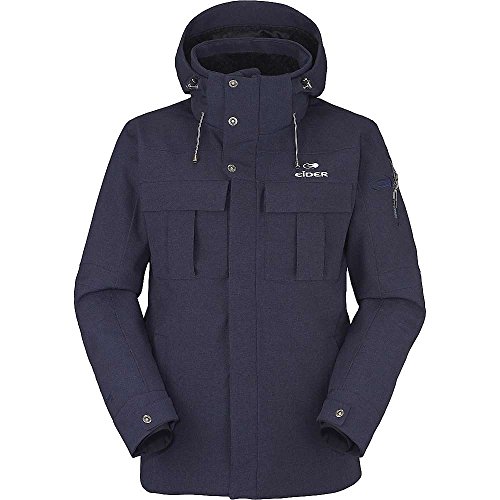 Studio : Eider Publisher : Eider Product Description FEATURES of the Eider Men's Redsquare Jacket Adjustable and removable hood with Plug in System Zipped front opening under flap Underarm ventilations with dual-covered zippers Zipped hand pocket under flap Patched zipped chest pockets under flaps Sleeve pocket with a YKK Aquaguard Vislon zipper Zipped inside pocket with a phone pocket and earphone cable opening Goggle pocket with integrated lens cleaner Removable snow skirt with nonslip band Knitted stretch cuffs with thumb holes Adjustable hem with elastic drawcord 0