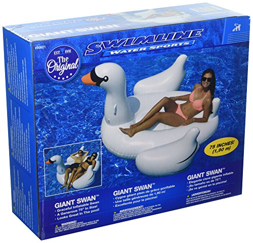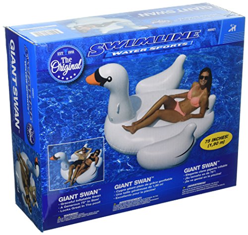 Studio : Swimline Publisher : Swimline Binding : Lawn Patio Product Description The International Leisure Swan is THE ORIGINAL Giant Inflatable Swan!! Kids and adults of all ages will love riding this graceful Giant Swan! Made of heavy duty vinyl this Giant Swan is super sized at over 76” long! 140 lb weight capacity. 0