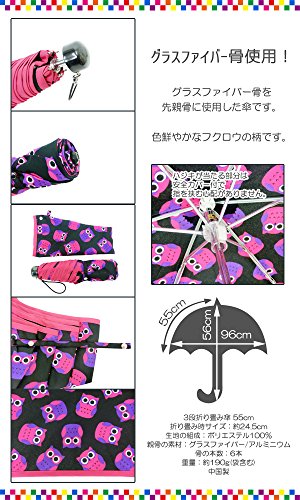 -. Title : ヤックパック フクロウプリントミニ 全2柄 折りたたみ傘 手開き 6本骨 55cm グラスファイバー骨
