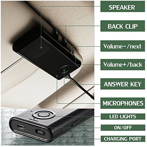 Bluetooth 4.1 Car Speakerphone Multipoint Wireless HD Stereo Speaker Support Hands-free Calling with Mic Car Kit Sun Visor Car Charger for Android Samsung LG HTC IOS iPhone 7 6 6S Plus (Black)