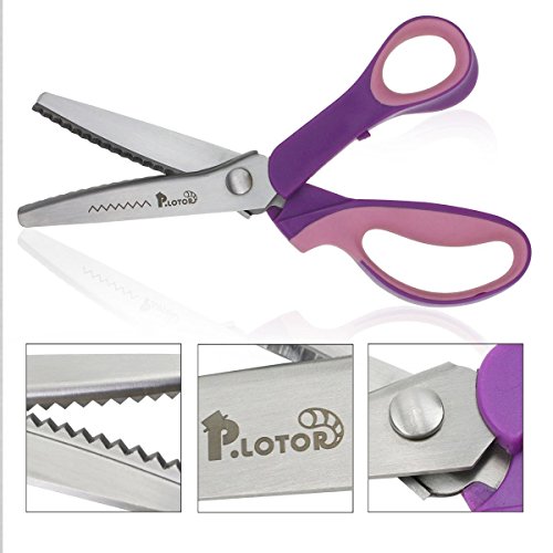 Pinking Shears, P.LOTOR 9.3 Inches Handled Professional Stainless Steel Dressmaking Sewing Craft Scissors (Serrated)