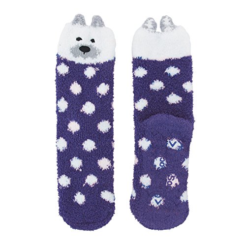 FUZZY ANIMAL CREW SOCKS 4 Pairs of Super Soft Warm Animal Cuff Non-slip Crew Winter Socks - Assortment C (Brown Bear, Grey Cat, Purple Polar Bear & Kitty)
