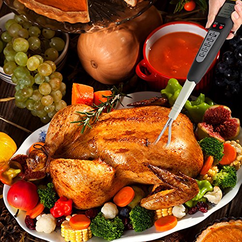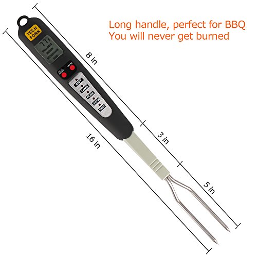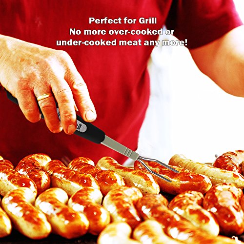 ★A Totally 16in length Commercial Grade Quality Cooking Thermometer It is very SAFE to be used in all kinds of cooking, home kitchen cooking, outdoor grilling, restaurant etc. It keeps your hands away from hot steam or fire while taking food temperature. ★Designed With a Fork Probe No like other food thermometer, this one has a temperature probe in a fork shape. This means you can use it as a turner to pick up or overturn the meat. ★5 Meat Type 4 Meat Taste Settings Choose between rare, medium rare, medium, or well done and get ideal tenderness and taste for steaks, poultry, pork chops and more. ★Ready Alarm- It will beep when the meat is ready, also the display will flash. ★Easy to Clean- The fork part is made from stainless steel, never rust, easy to clean. Packages Include: 1 × Diwenhouse 2-in-1 Meat Thermometer and Cooking Fork 1 × User Manual