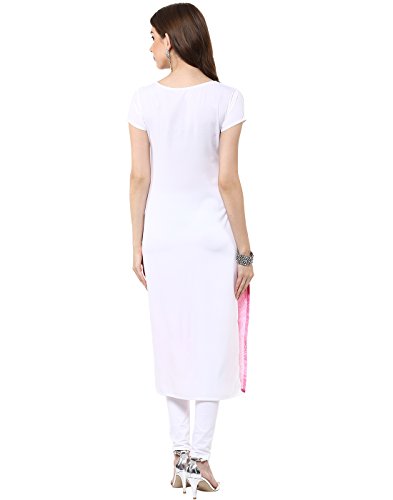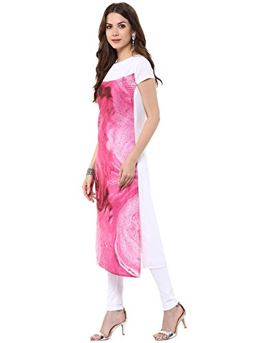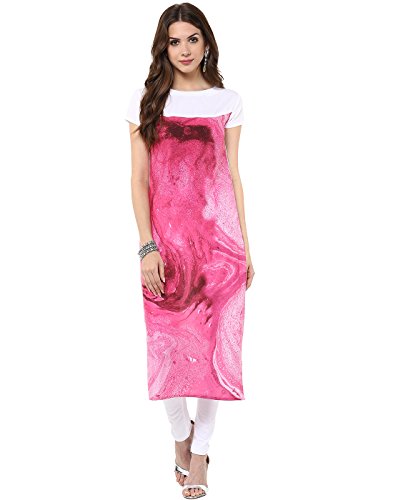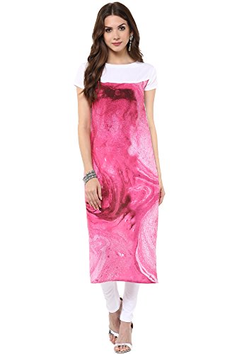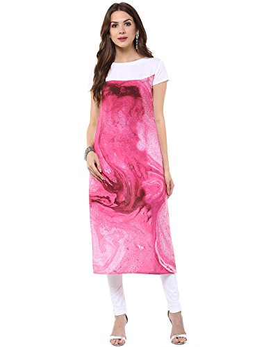 Product DescriptionJanasya abstract print pink white short sleeves casual crepe kurti.0