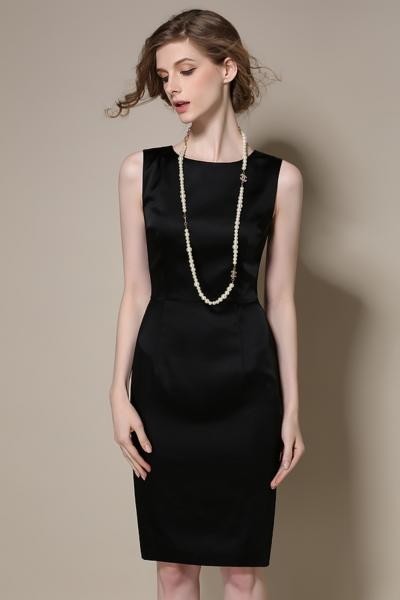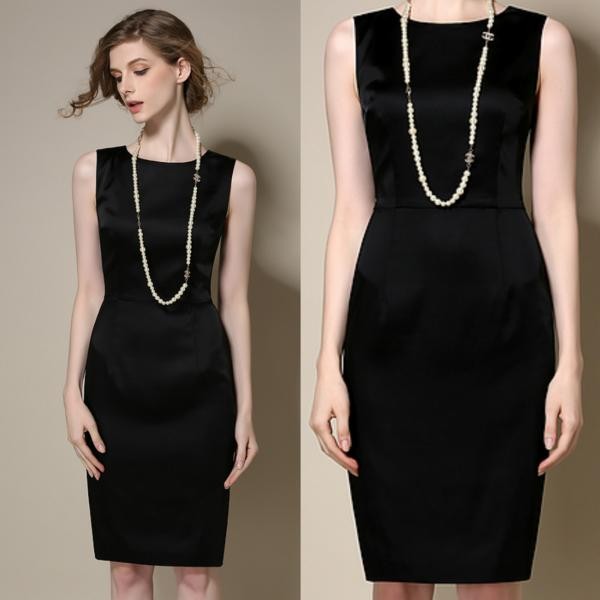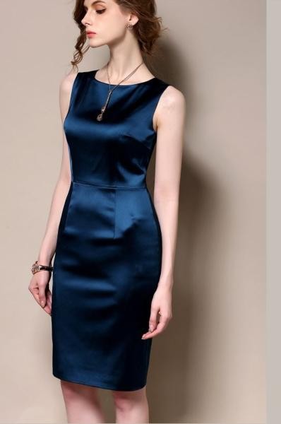 シンプルデザイン タイトスカート ドレスワンピース ネイビー/ XL