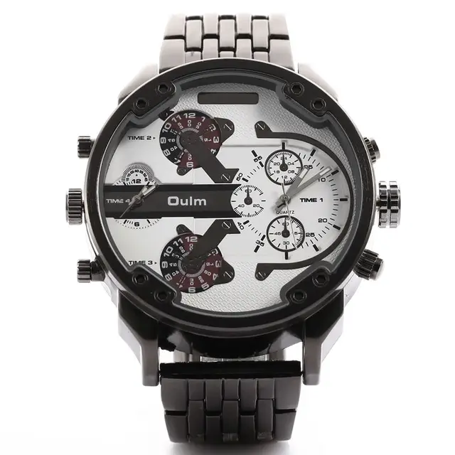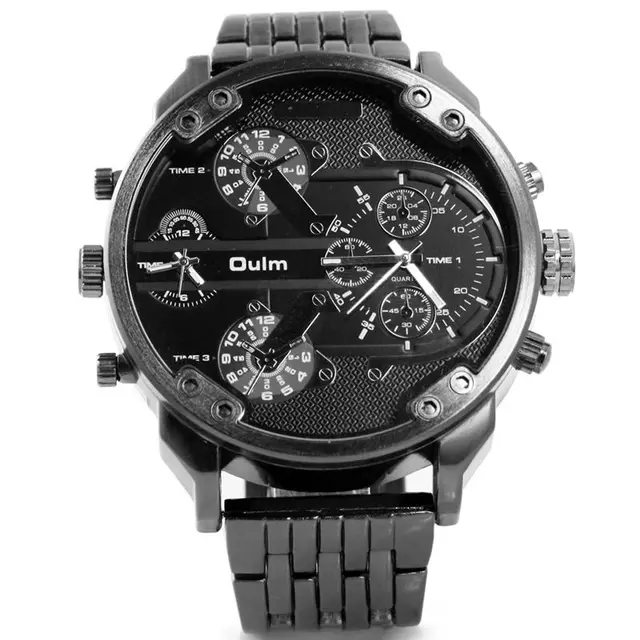| [해외]Oulm 럭셔리 브랜드 DZ 스타일 남성 합금 금속 시계 육군 큰 크기 듀얼 타임 남성 캐주얼 시계 군사 시계 Relogio Masculino |