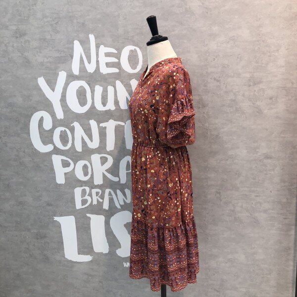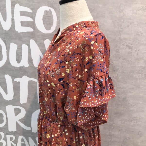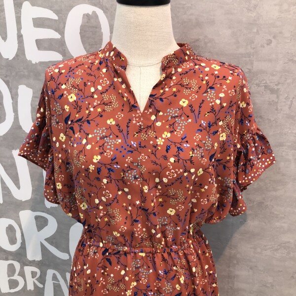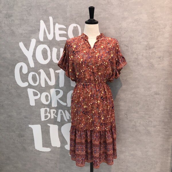 슬리브와 헴라인에 프릴 디테일이 러블리한 플라워 프린트의 원피스입니다