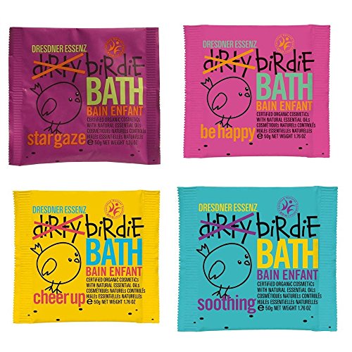 - 4 TIMES THE FUN - Created just for kids this set of 4 German made bath packets by Dresdner Essen comes in 4 scents and colors, each package is 1.76 oz.