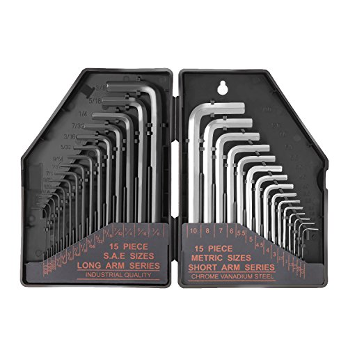 Tacklife Hex Key Wrench Set HHW1A Allen Keys with 15 Black Long Arm(Inches): 0.028”Up To 3/8" and 15 Matte Finished Short Arm(Metric): 0.7mm Up To 10 mm, 30-Piece