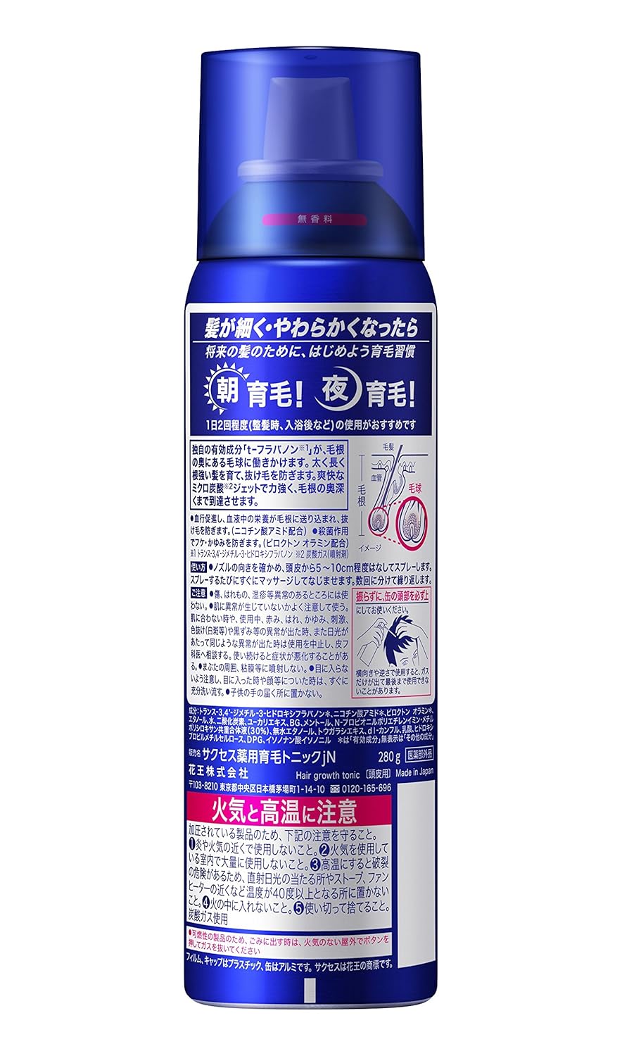 エアゾール製品です。お使いになる時や廃棄される時は、火気と高温にお気を付けください。