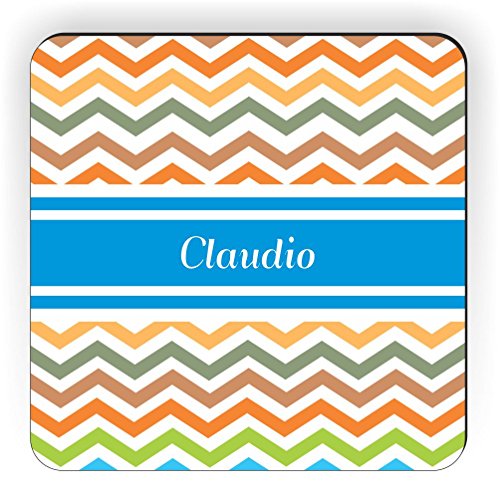 Rikki Knight "Claudio" Blue Chevron Name Design Square Fridge Magnet