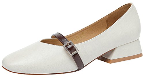 (Passionow)/Women's/Loafers Slip-Ons/DIRECT FROM USA/Passionow Women's Trendy Low Chuky Heel Strap Buckle Patent Leather Casual Dress Shoes