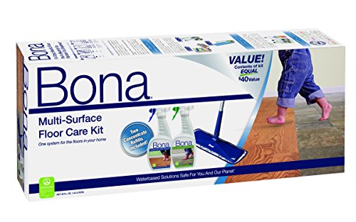 -. Binding : Kitchen -. Brand : Bona -. Color : _ -. EAN : 0737025012885 -. Feature : Durable 4 piece mop handle with 4x 15Mop head / Bona Microfiber cleaning pad / Full Size Bona hardwood floor cleaner original Formula / Full Size Bona stone, tile and Laminate floor cleaner / Bonus - Free hardwood floor cleaner original Formula concentrate refill ($6 value) -. IsAutographed : 0 -. IsMemorabilia : 0 -. Label : Bona -. Manufacturer : Bona -. Model : WM710013501 -. MPN : WM710013501 -. NumberOfItems : 6 -. PackageQuantity : 1 -. PartNumber : WM710013501 -. ProductGroup : Home -. ProductTypeName : HOME -. Publisher : Bona -. Studio : Bona -. Title : Bona Multi-Surface Floor Care Kit -. UPC : 737025012885