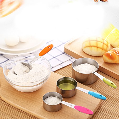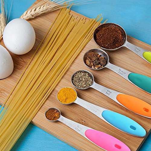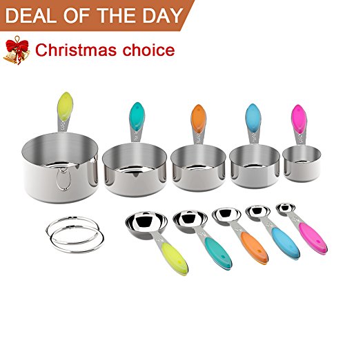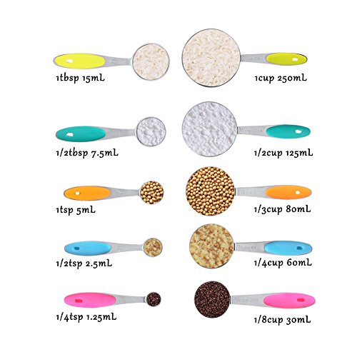 10-piece 18/8 Measuring Cups and Spoons Set, Ejoyous Stainless Steel Kitchen Tool with Colorful Silicone Handle Grip for Baking Accessories (Multicolor)