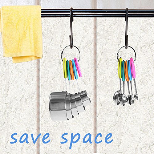 - 【Room Saving Design】Easy to hang as a bunch thanks to the 2 large stainless steel rings. Your measuring spoons and cups will look tidy and occupy no kitchen place.. Let the colorful bunch add a touch of style to your kitchen décor!
