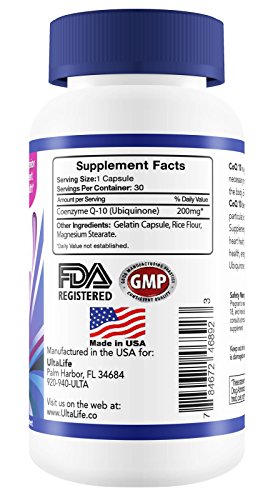 -. Binding : Health and Beauty -. Brand : UltaLife -. Color : white -. EAN : 0784672468923 -. Feature : ✔ UltaLife's CoQ 10 with is the BEST Choice of Ubiquinol / Ubiquinone for Superior Cardiovascular Health. Easily absorbed into your system. / ✔ How important is CoQ 10 to your overall health? CoQ 10 plays a very important role by increasing the energy in every cell in your body. It is a powerful antioxidant that is a necessary nutrient for cell function in the body. / ✔ How important is CoQ 10 for heart health? CoQ 10 production in the body decreases with age--especially in the area of the heart. Supplementing with CoQ 10 may help support healthy aging and a healthy heart. #1 BEST Supplement for statin users to balance and improve heart health. / ✔ Does CoQ 10 help your energy level? One of the many benefits of CoQ 10 is that studies show increased performance and less tiredness after exercise. CoQ 10 actually helps cells convert fat & sugar to energy. / ✔ Easy-to-swallow vegetable capsules. Gluten-Free. Full one month supply. Your satisfaction always guaranteed. Made in the USA. FDA Registered Facility. GMP Seal for Good Manufacturing Practice & Consistent Quality. -. IsAdultProduct : 0 -. Label : UltaLife -. Manufacturer : UltaLife -. PackageQuantity : 1 -. ProductGroup : Health and Beauty -. ProductTypeName : HEALTH_PERSONAL_CARE -. Publisher : UltaLife -. Size : 30 capsules -. Studio : UltaLife -. Title : #1 Best CoQ 10 - Coenzyme q10 called a 'Miracle Supplement' Affects Every Cell in Your Body - Supports Heart Health, Increases Energy & Stamina, Boosts Cognitive Awareness + Mental Focus and Promotes Healthy Aging - Ubiquinone and Ubiquinol are Essential For Your Body - 1 Easy-to-Swallow Capsule a Day -. UPC : 784672468923