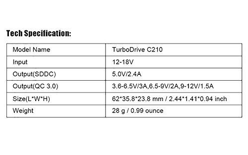 What You Get: VEDFUN TurboDrive C210 car charger with Quick Charge 3.0,Quick Charge micro USB cable(3.3ft), user manual
