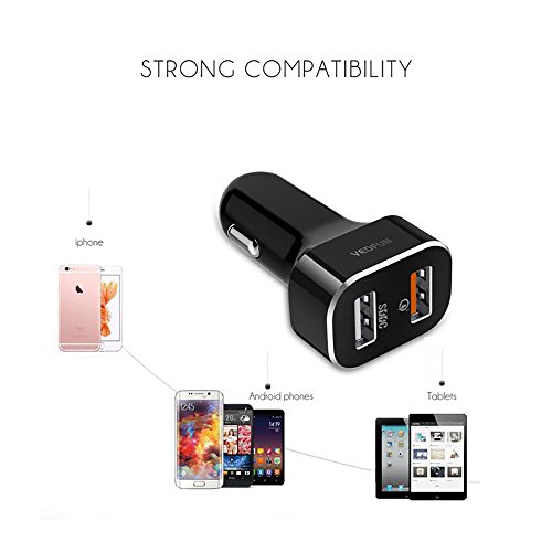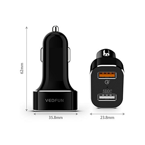VEDFUN TurboDrive C210 2 Port 30W Quick Car Charge 2 Dual USB Car Charger 5.0V/2.4A with Quick Charge 3.0 USB Smart Charger