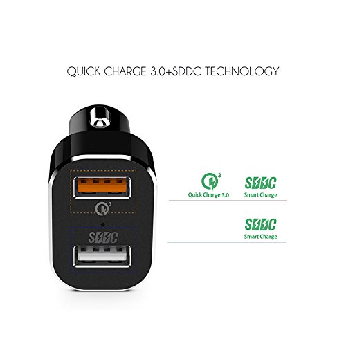 SDDC Technology: Both 2 ports build with SDDC Smart Charge Technology,which can automatically identifies the current required for each connected device, charges non-QC devices at peak current, which is up to 2.4A each port.