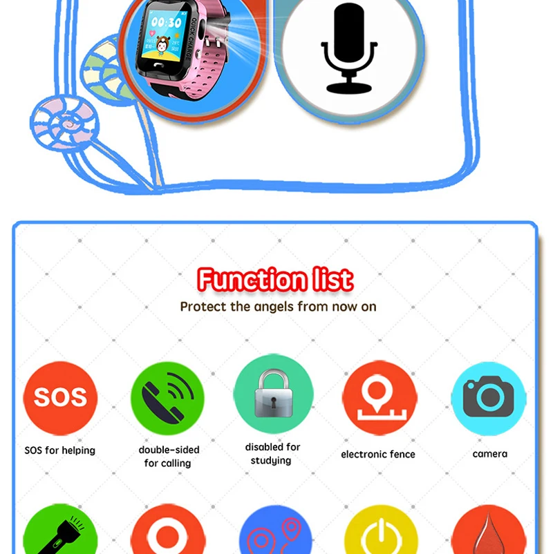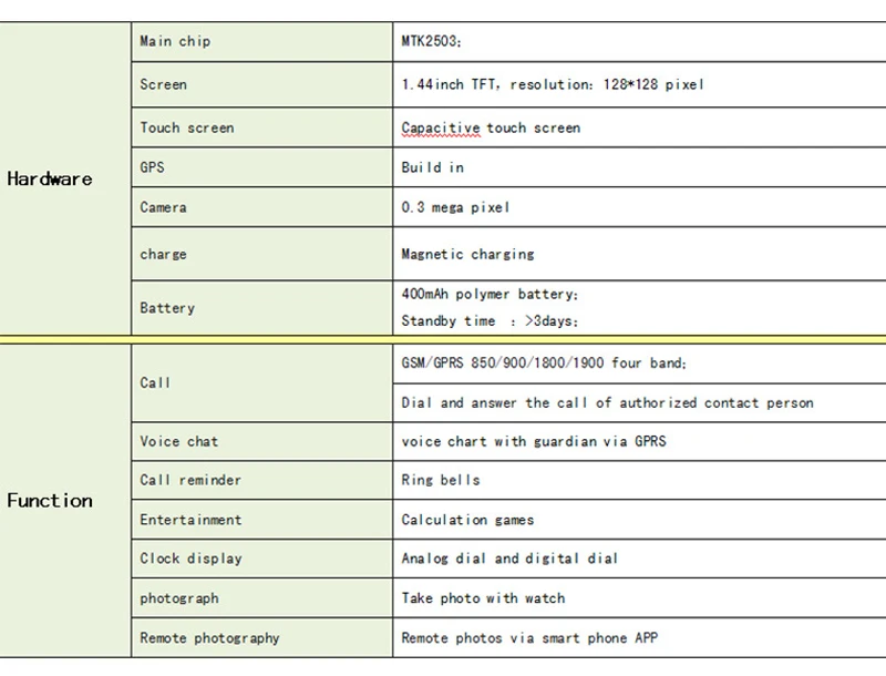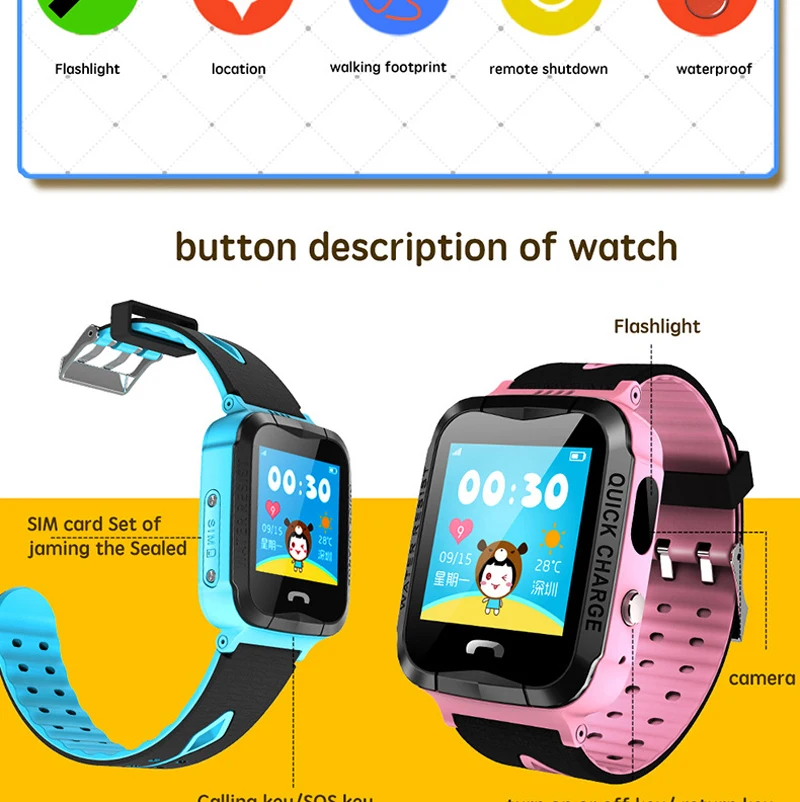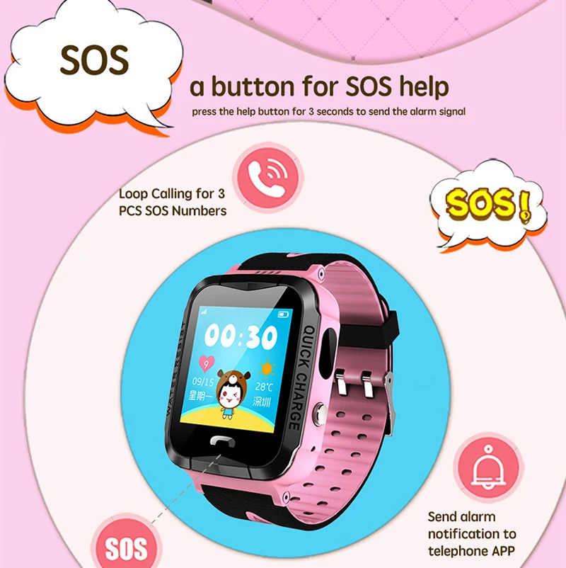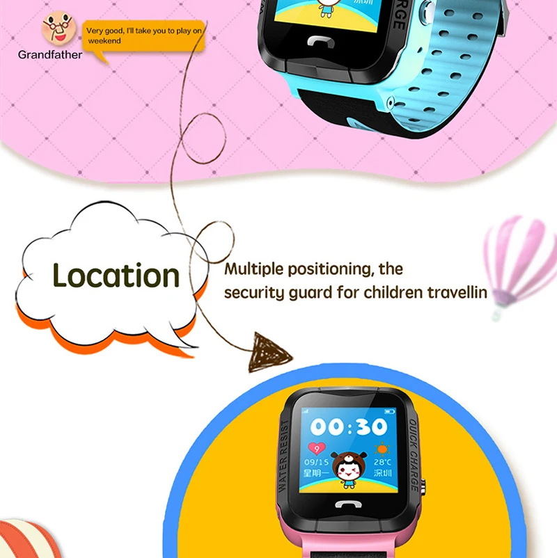 Function:Waterproof,SOS,Answer Call,Dial Call,GPS Tracker Watch