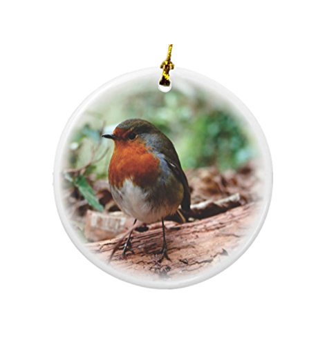 Rikki Knight Robin Red Breast on Wood Design Round Porcelain Two-Sided Christmas Ornaments