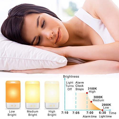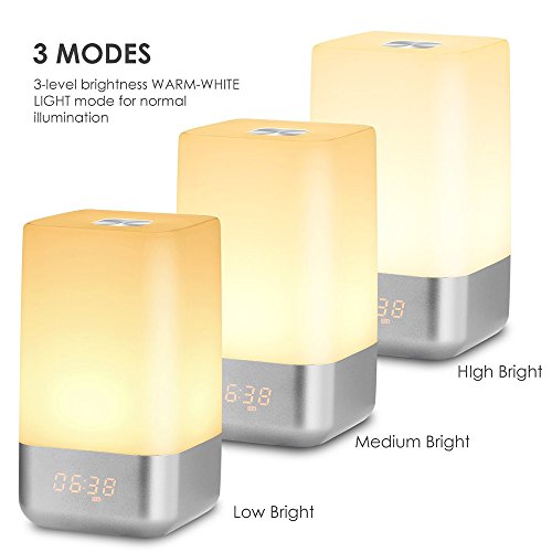 Warm White Light Modes: Level 1 Warm White Light: One touching on the sensor . Level 2 Warm White Light: One touching again when on level 1 . Level 3 Warm White Light: One touching again when on level 2 . How To Setting The Display Time (1) Short press the "time setting" button, combined with " " or" -" button to select 12H or 24H. Confirm the setting by short pressing the "time setting" button. (2) Long press the "time setting" button to activate time setting, press the " " or" -" button to set the displaying time. (If you see a alarm symbol on the display of light, the alarm was set up successfully.)