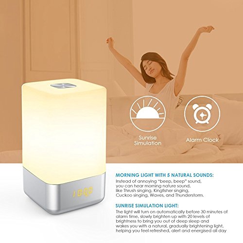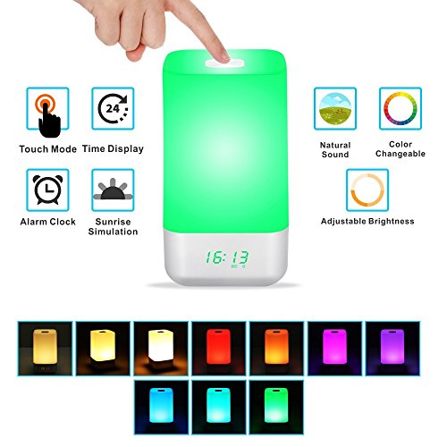 Specification: Material: PC Light Modes: 3 Level Warm White, 256 RGB Color Light Power Input: 5V/1A Built-in Lithium Battery: 3600 mAh Lifetime: Up to 20,000 Hours Dimesions: 9.4 x 4.9 x 4.9 inches Weight: 1.2 pounds Time Formats: 12H/24H Charging Time: 2 hours Working environment temperature:-5℃ - 40 ℃