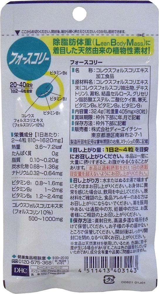 健康的にダイエットしたい!・リバウンドしたくない!・スッキリボディをめざしたい!「フォースコリー」は、除脂肪体重(LBM)に着目した、DHCの大人気ダイエットサプリです!