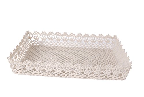 A&B Home 37231-BEIG Cotton Resin Lace Tray, Beige, 19 by 13.2 by 3.2-Inch