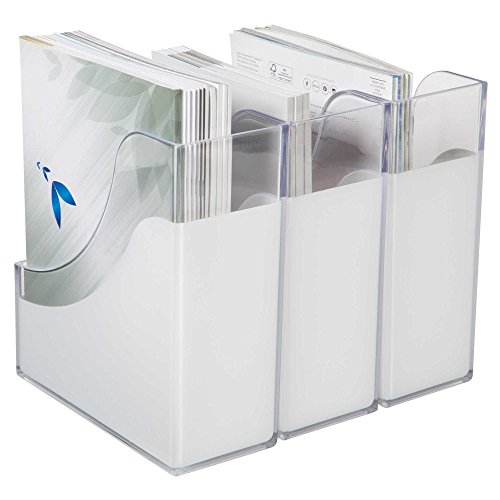 HomeCrate Modern Desk Organizer Magazine File Holder, Set of 3 - Clear / White