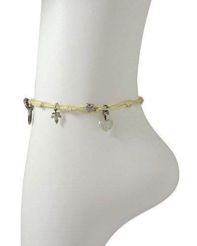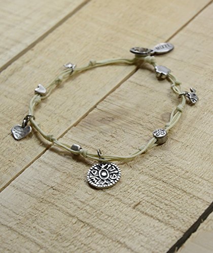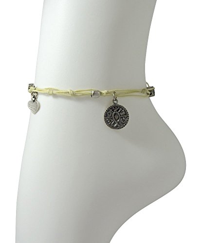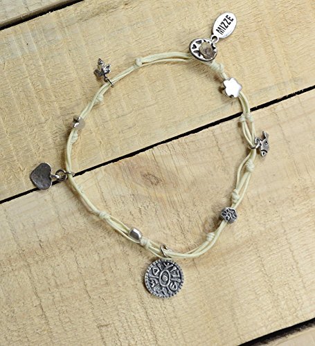 This Gate Opening bracelet for women includes the King Solomon Seal for guiding the wearer to new beginnings - made of 925 Sterling Silver. The coin charm is 0.5" in diameter. The bracelet charm (925 Silver) is a King Solomon Seal amulet. King Solomon amulets, inspired by King Solomon, increase awareness and focus people on a specific goal, or dream. Choose the Seal that's right for you - 14 are available! This beautiful light cream colored wax cotton ties charm anklet is size 9.5" and includes various lucky charms. This very sturdy, high quality handmade anklet is made with wax cotton cord, has a button clasp and is waterproof. MIZZE Made for Luck Jewelry provides a 100% full money back guarantee. If you are unhappy with your Charm Anklet, for any reason, please contact us!Feature
