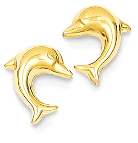 ICECARATS DESIGNER JEWELRY 14K YELLOW GOLD SMALL DOLPHIN POST STUD BALL BUTTON STUD EARRINGS