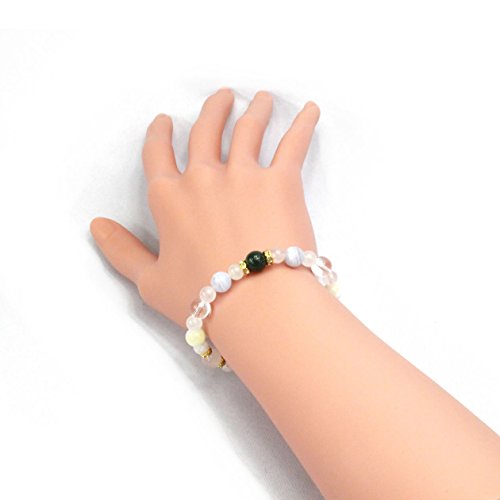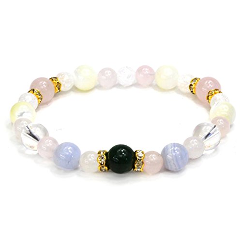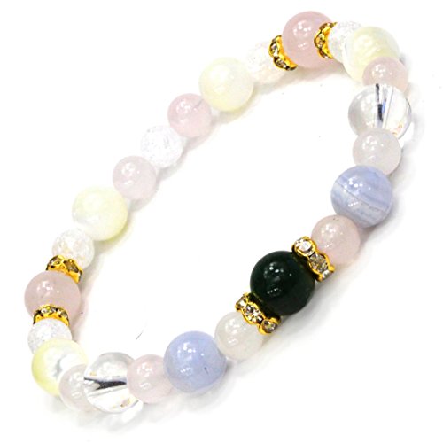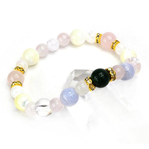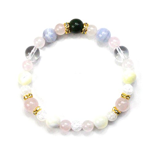 ◆마음 안정되는 그린 컬러의《아벤추린》를 주요하석에 색취 훌륭한 천연석 파워 스톤에디자인된 콤비네이션 팔찌입니다. 블루나 핑크의 컬러풀한 색조와 크랙 쿼츠의 키라《메키》가 멋지게 융합한 패셔너블 파워 스톤 팔찌입니다.