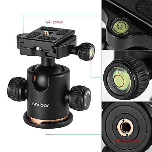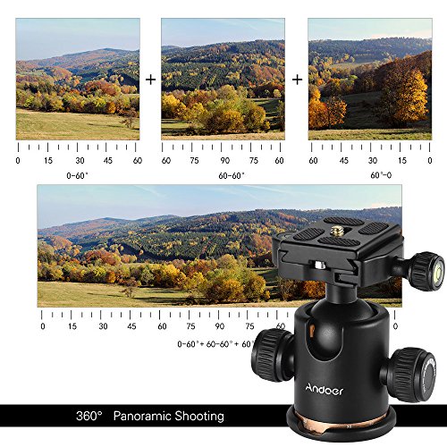 Andoer Camera Ball Head Tripod Head with Quick Release Plate Fits with Arca-type quick-release system Max Load 8kg for Canon 5D markII III Rebel T6 Nikon D etc