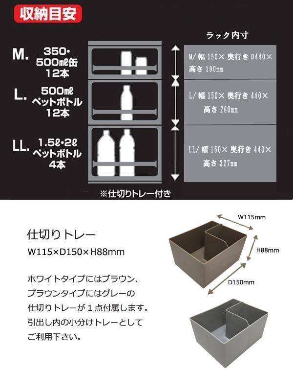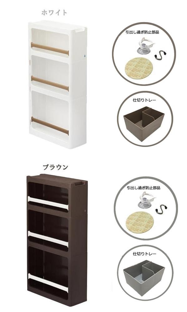 | 付属品 | キャスター(底面後方/2個)、仕切りトレー、引出し過ぎ防止部品(S字フック、紐、吸盤、吸盤補助板) |