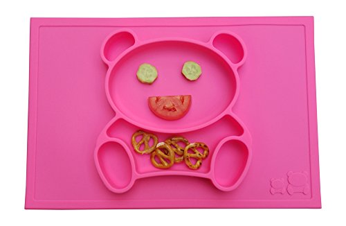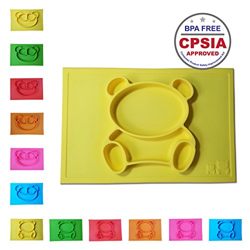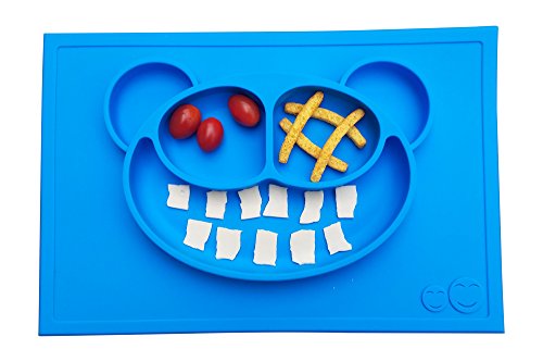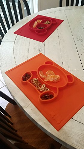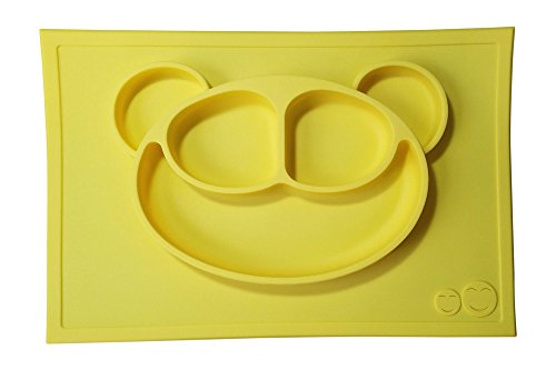 -. Feature : ONE PIECE: Made with one piece of silicone, this place-mat has compartment shaped liked a cute monkey or bear to put different types of food in each one and keep them separate. / ELIMINATE MESS & SPILLS: Feed your baby or toddler stress free! This placemat sticks to the table with suction which prevents your child from flipping over or tipping the mat. / CUTE DESIGNS: These adorable placemats or for boys and girls, and they help make meal time more fun. Choose from a monkey or bear in yellow, pink, orange, green, red or blue. / NONTOXIC & BPA FREE: Safe for your kids to eat off without worry, this placemat is made with high quality food grade silicone that is BPA, PVC and phthalate free for your safety. / EASY TO CLEAN: This is a dream for busy parents always on the go, cleanup is quick and easy. Simply wash in warm soapy water or pop it in the dishwasher and voila! You're done!