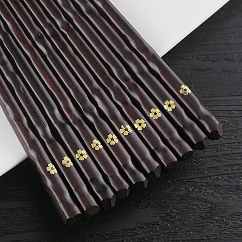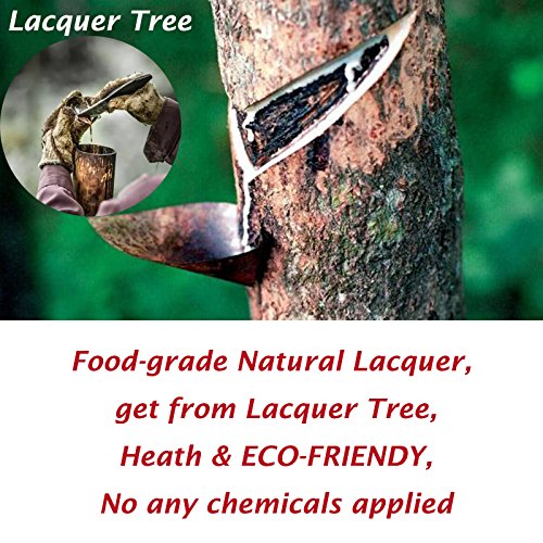 ECO-FRIENDY MATERIAL: This Wooden chopsticks set made by Fine Solid Wood, coated with Food-grade Natural Lacquer, very lightweight and durable, won't swell or absorb water; never get rusty or go mouldy, last long; no any chemicals applied, good for health.