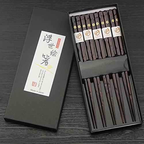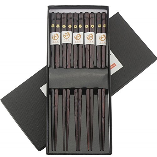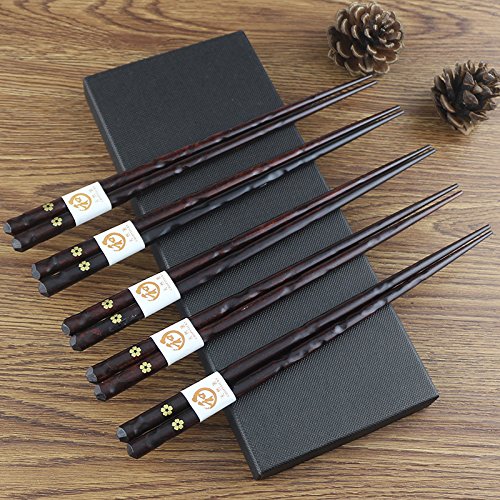 Chopsticks Set, ADLORYEA 5 Pairs Reusable Japanese Style Wooden Chopstick Set, made by Natural Wood with Gift Box