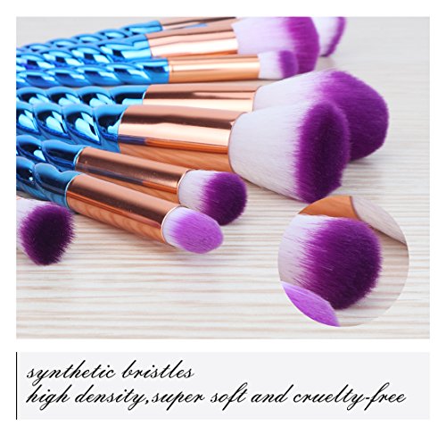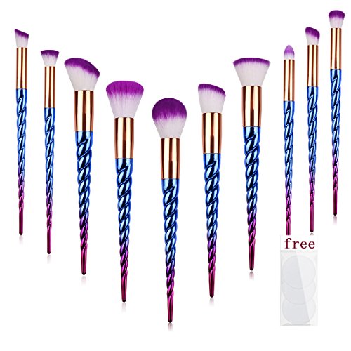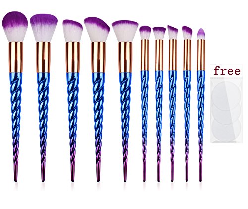 MX C.Y Beauty Unicorn Makeup Brush Set, 10Pcs Foundation Eyebrow Eyeliner Blush Cosmetic Concealer Brushes With 3 Pcs Cotton Puff